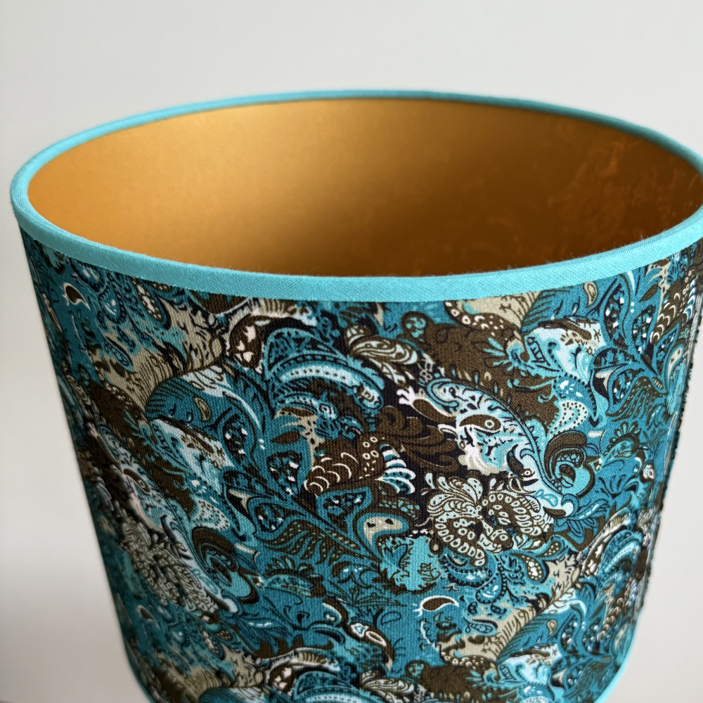 De handgemaakte lampenkap heeft een doorsnede van 25 cm.