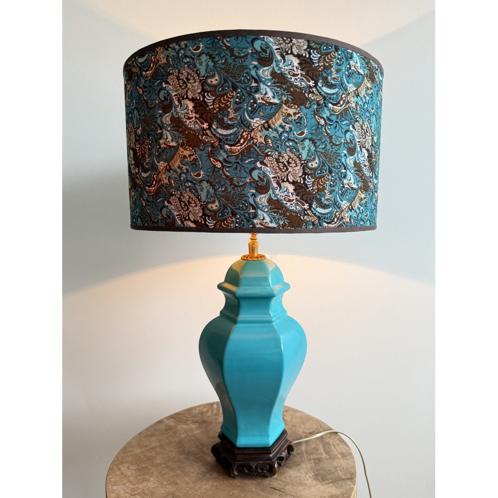 Prachtige tafellamp, gemaakt van een oude keramieken tafellamp met een mooie bewerkte voet.