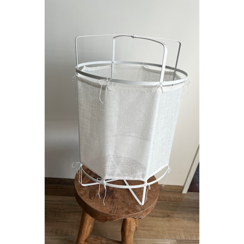 Lampion hanglamp gemaakt van witte aluminium strips met een cover