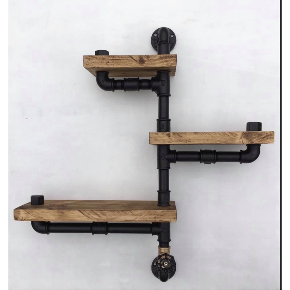 Stoer, industrieel wandrek met stalen buizen en fittingen van