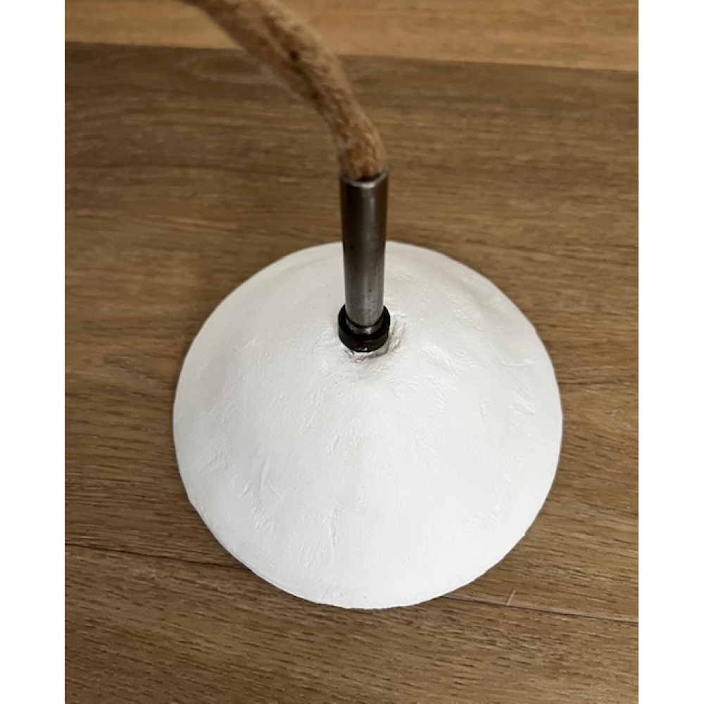 De hanglamp heeft een textielsnoer dat op touw lijkt.