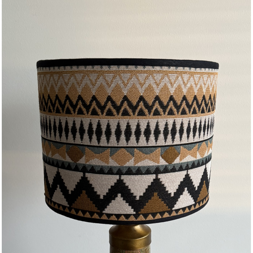 Unieke handgemaakte lampenkap met aan de binnenzijde een mat gouden folie. Hoogte 20,5 cm diameter 25 cm