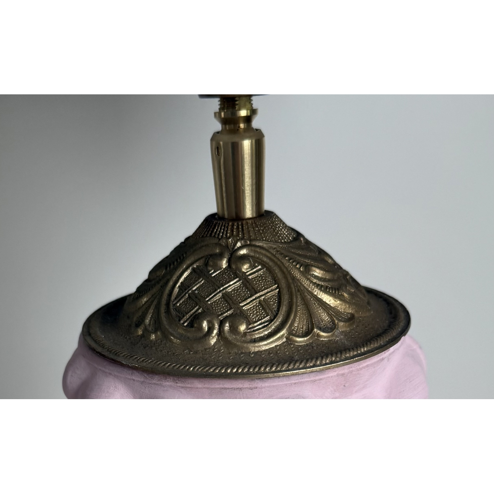 Van een bolletjes vaas een roze lampenvoet gemaakt.