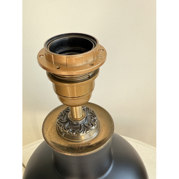Van een metalen vaas een lampenvoet gemaakt in het matzwart.