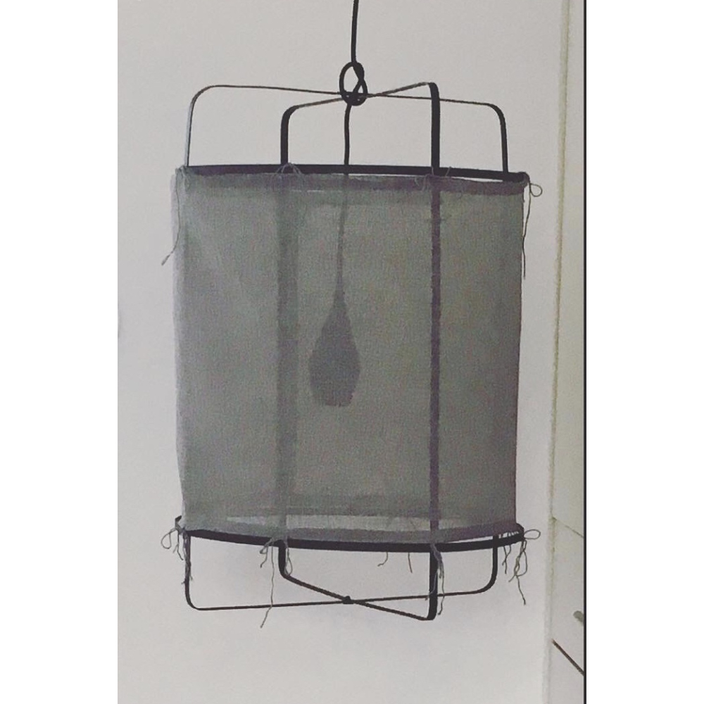 Lampion hanglamp gemaakt van zwarte aluminium strips met een cover