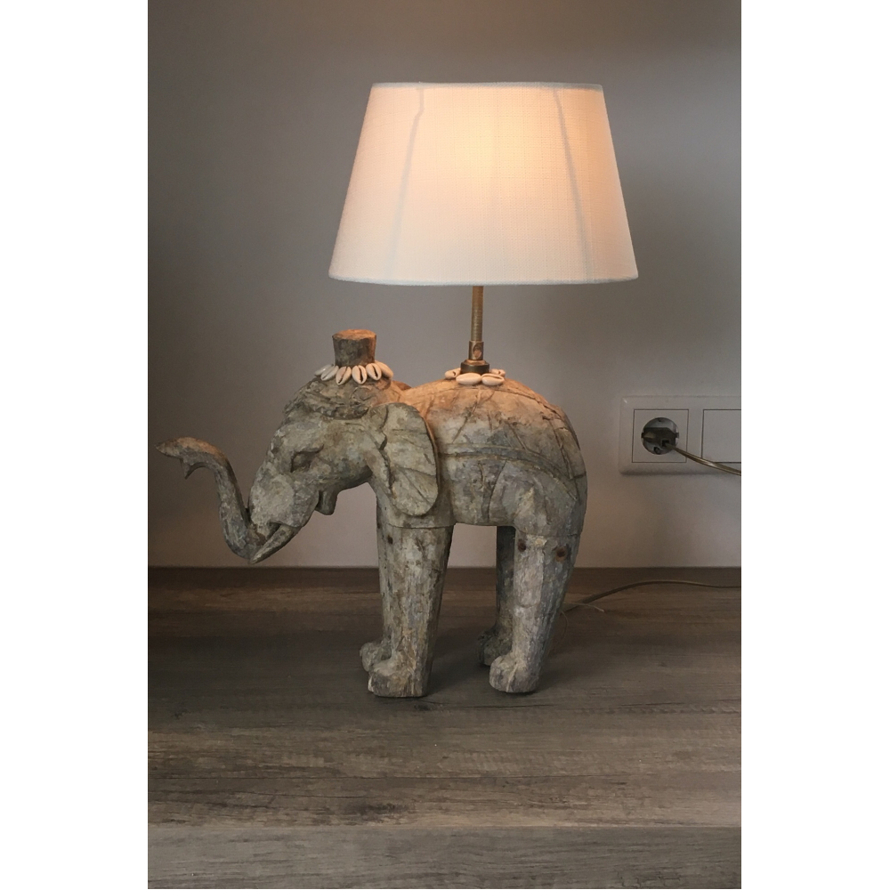 Prachtige tafellamp gemaakt van een handgemaakte houten olifant uit India.