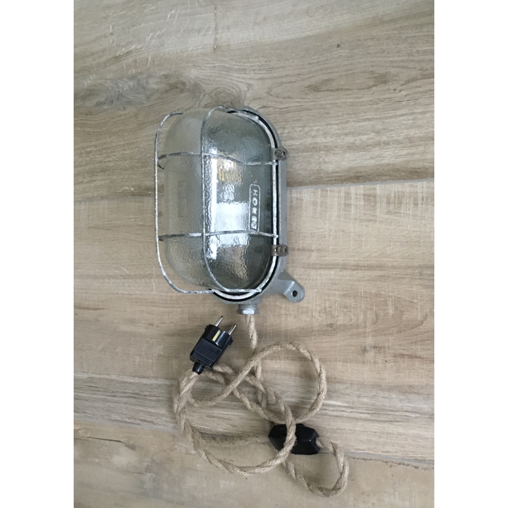 Unieke oude industriële kooilamp uit de DDR jaren 60.