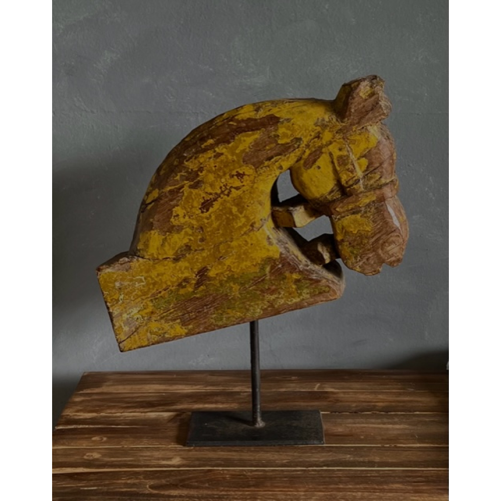 Het paardenhoofd werd gebruikt als sierornament aan de gevel van een familiehuis in India.