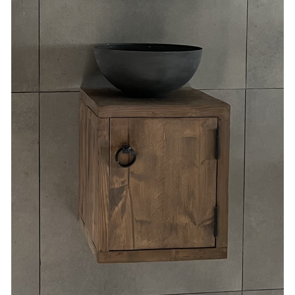 Zwevend toiletkastje gemaakt van oud steigerhout.